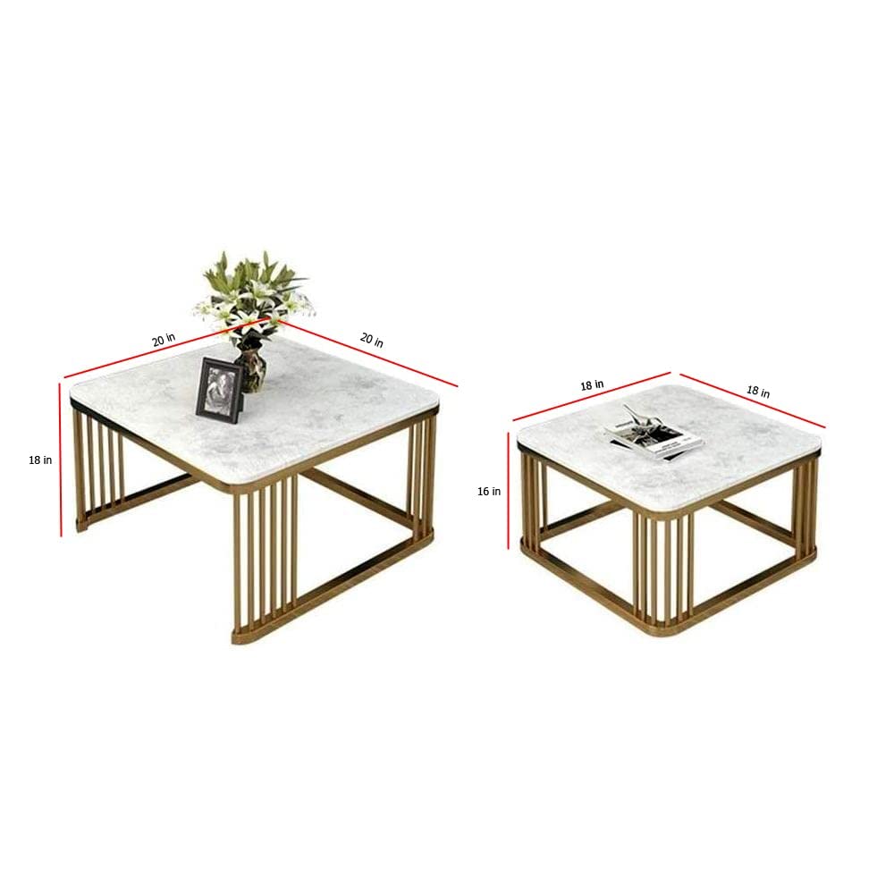 Elevate your living room with the AMASS HANDICRAFTS Coffee and Tea Table Set. This stunning set of two marble-look end tables is crafted from high-quality marble and features open shelves for displaying your favorite decorative pieces.
