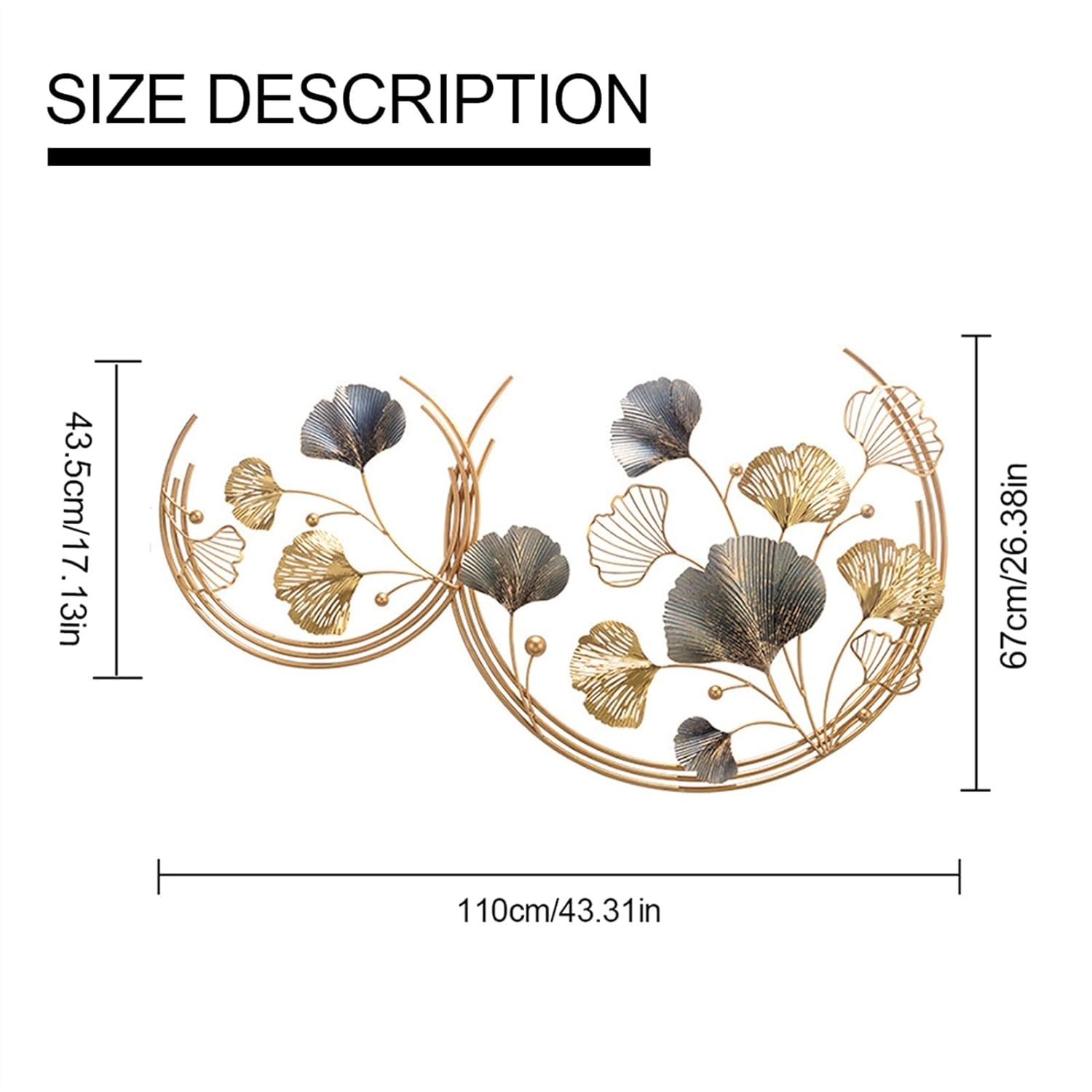 The half moon design, adorned with intricate leaf patterns, creates a stunning visual effect that will captivate your guests. Perfect for adding a touch of elegance to your hallway, living room, dining room, bedroom, or entryway, this beautiful piece of metal wall art is sure to become a conversation starter.