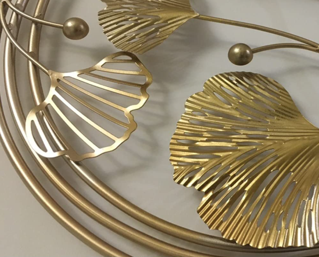 The half moon design with leaf pattern creates a unique and eye-catching visual effect, making it a perfect conversation starter for any room. The golden finish adds a warm and inviting glow, complementing any home decor style.