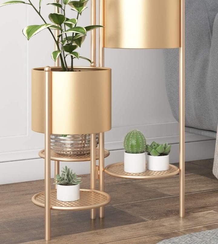 Modern Metal Floor Flower Stands for Living Room Bedroom Display Plant Stand Tall Indoor Plant Stand with Planter Pot (Set of 3) (Gold)
